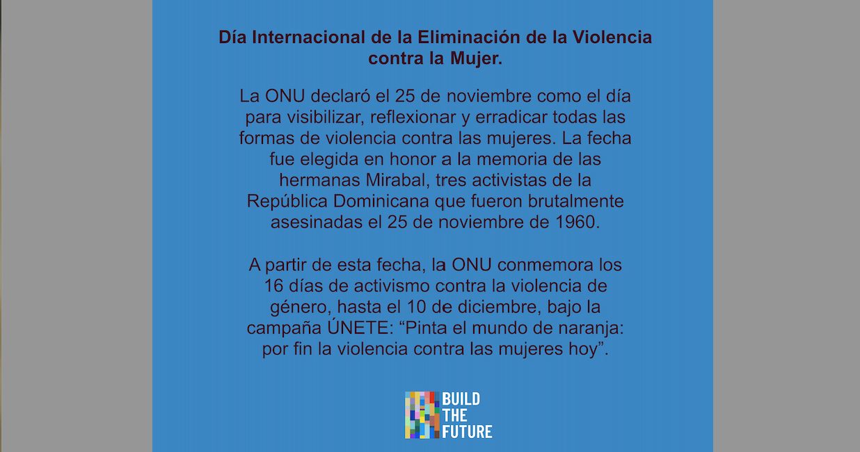 25 de noviembre – Día Internacional de la Eliminación de la Violencia contra la Mujer.